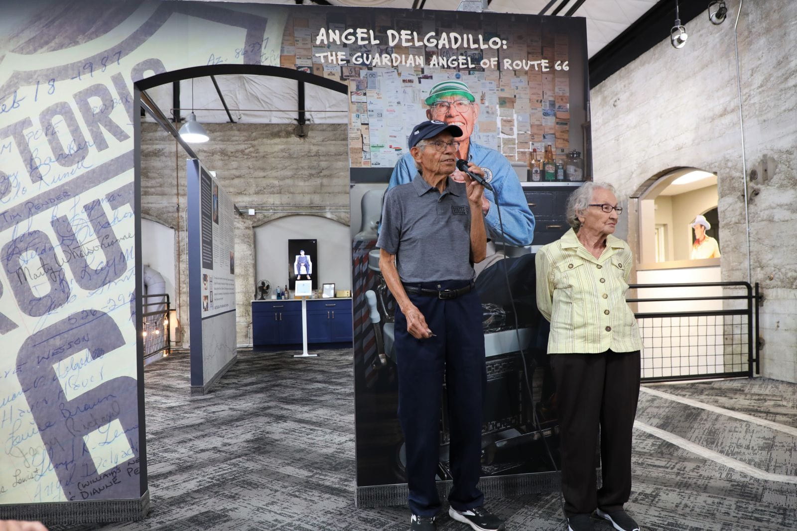 Today we celebrated the opening of The Angel of Route 66 Exhibit. Angel Delgadillo, the Guardian Angel of Route 66, cut the ribbon on this brand-new exhibit all about his impact on Route 66. The project began with StoryFile, which is an interactive multimedia display visitors can use to ask a virtual Angel questions about Route 66 and his life, and he responds in real time.