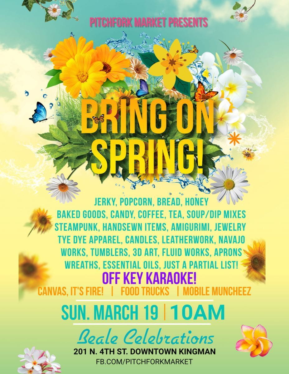 BRING ON SPRING with us on Sunday, 3/19 from 10am-3pm! We'll have Off Key Karaoke here along with 45 small business merchants offering wonderful items as well as our hard working food truck friends! Stop in Beale Celebrations 201 N. 4th St. in historic downtown Kingman. We can't wait to see ya!